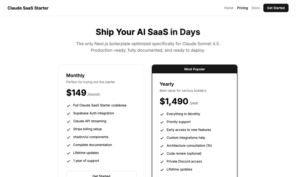 Claude SaaS Starter sits in the sweet spot: everything you need, nothing you don't. Production-ready code that you actually understand and can modify.
