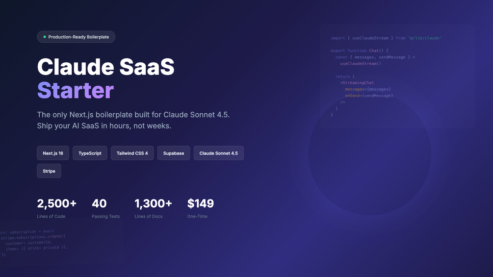 Every boilerplate out there is built for OpenAI. But you chose Claude for a reason — Sonnet 4.5 beats GPT-4o on code, reasoning, and streaming latency. The problem? Zero dedicated tooling. You're stitching together random tutorials and praying it works.